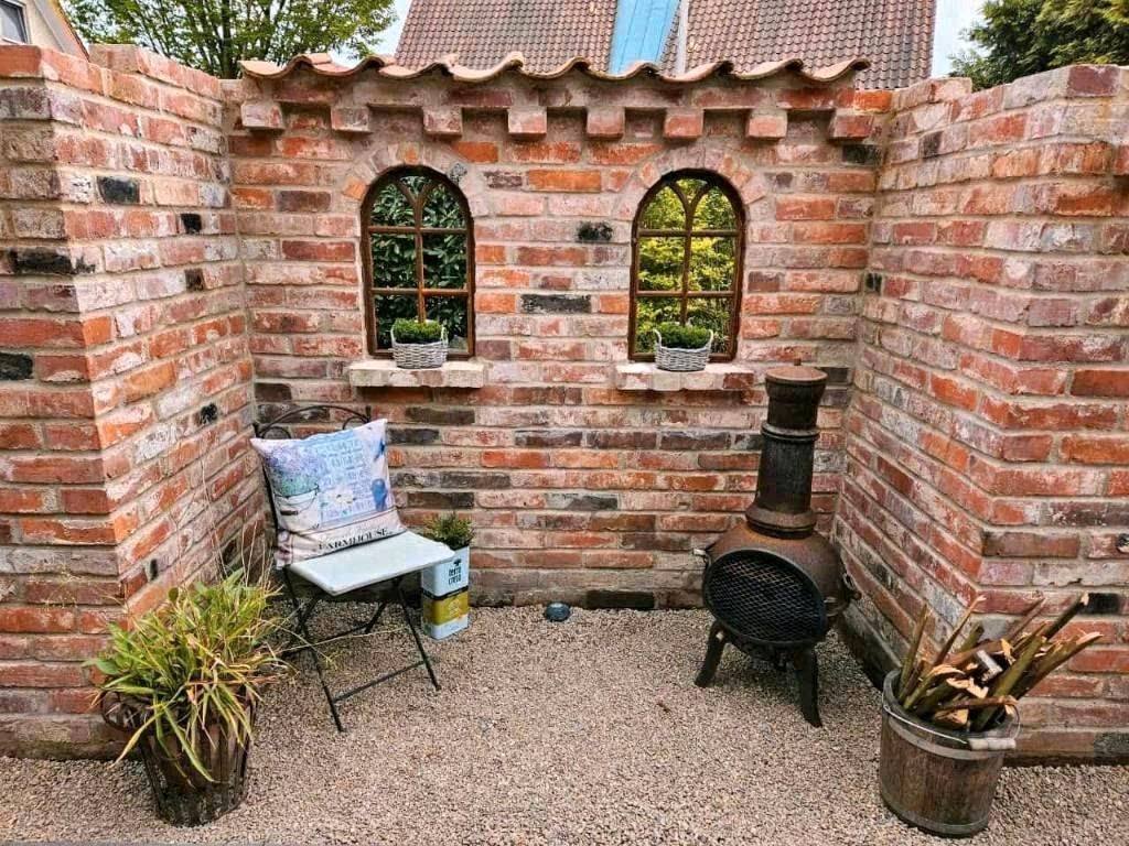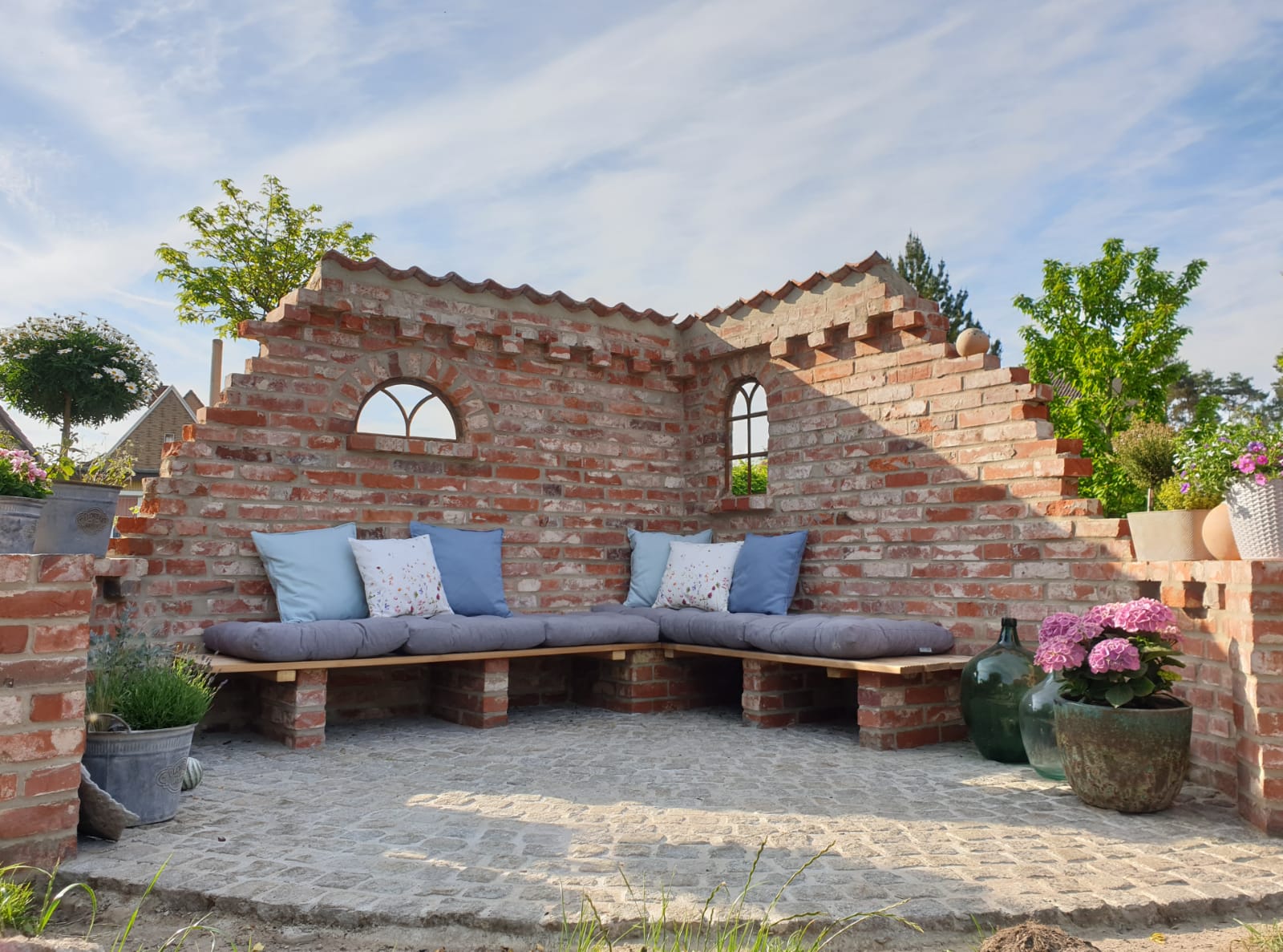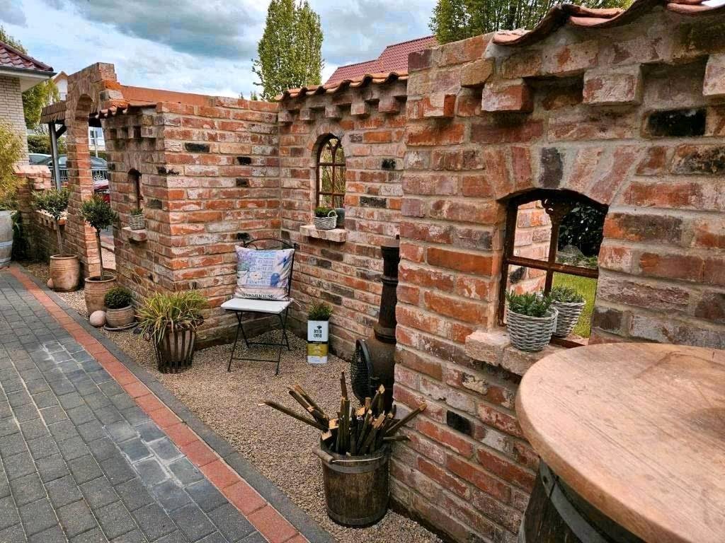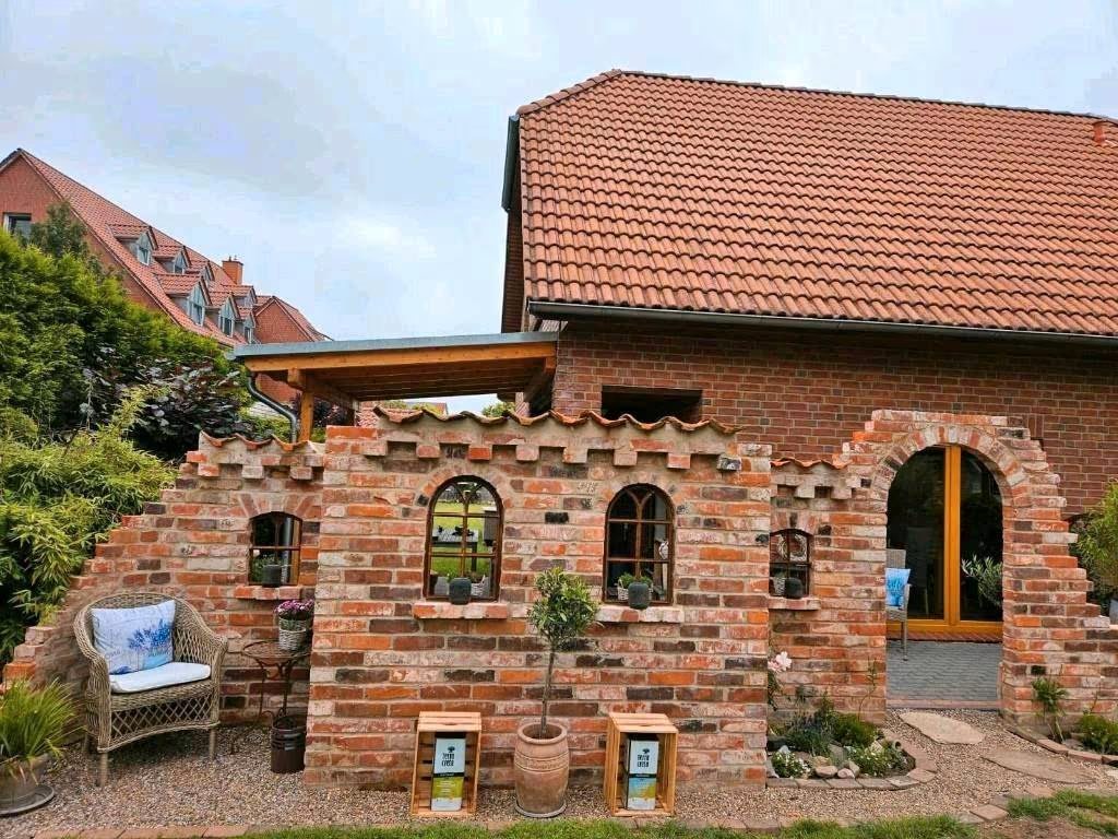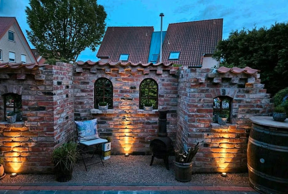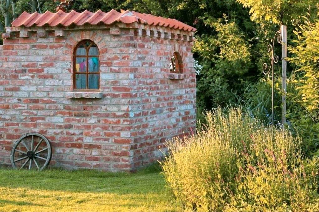 Bereits bestehende Bauten lassen sich im "Ruinen-Look" verschönern. Verzieren Sie doch die triste weiße Garagenwand mit einer Verklinkerung aus alten Ziegeln und beziehen sie so harmonisch in die Gesamtgestaltung des Gartens ein.