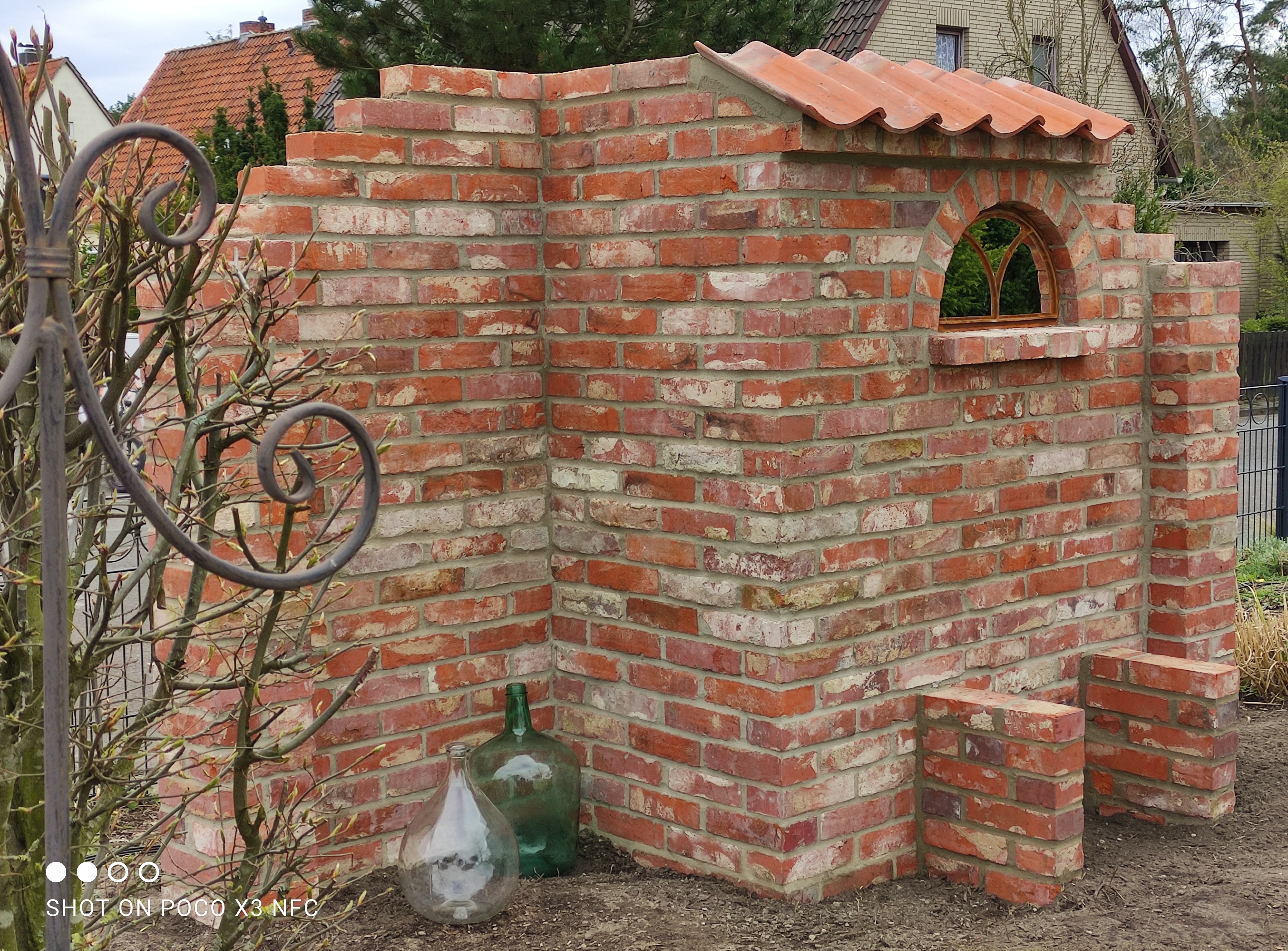 Fachgerechter Bau - ich verfüge über die dazugehörigen alten handwerklichen Kenntnisse und Techniken - von stabilen Ruinenmauern mit aufbereitetem Baumaterial bedeutet, Sie erhalten Bauwerke aus historischen, handgeformten Ziegelsteinen, die aus sorgsamen Rückbau alter Gebäude und Hofanlagen stammen.